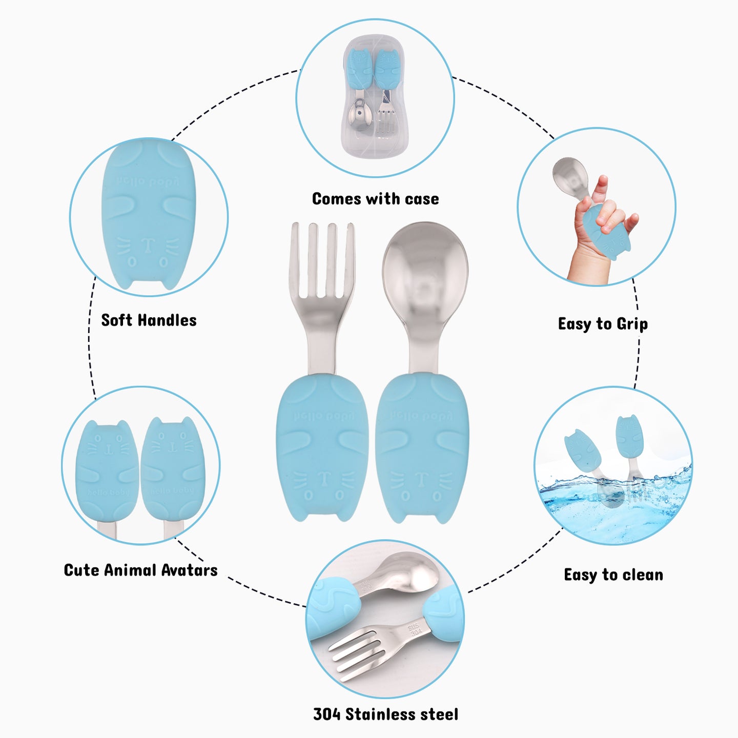 - Includes: 1 Baby Spoon, 1 Baby Fork and a Portable Cutlery Case