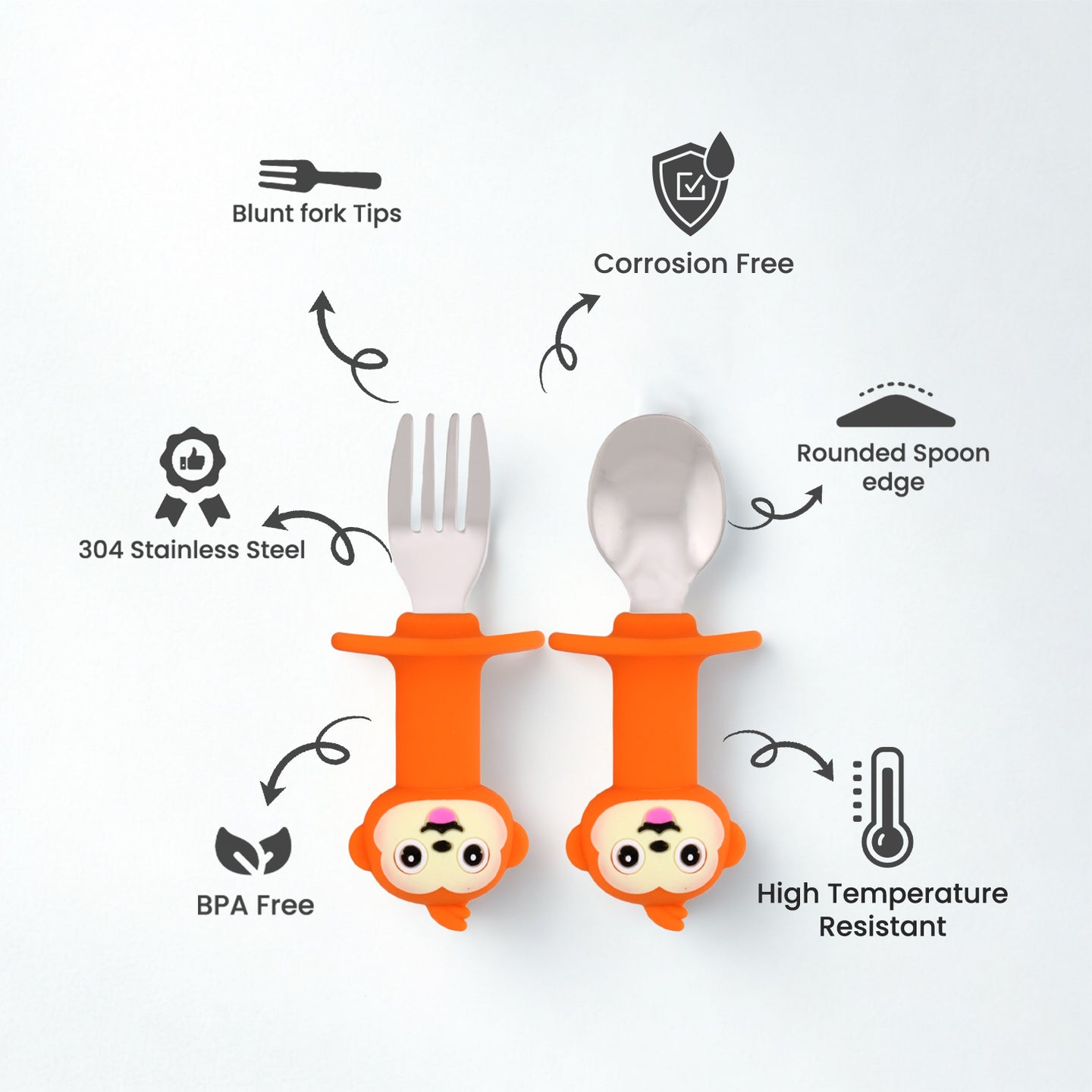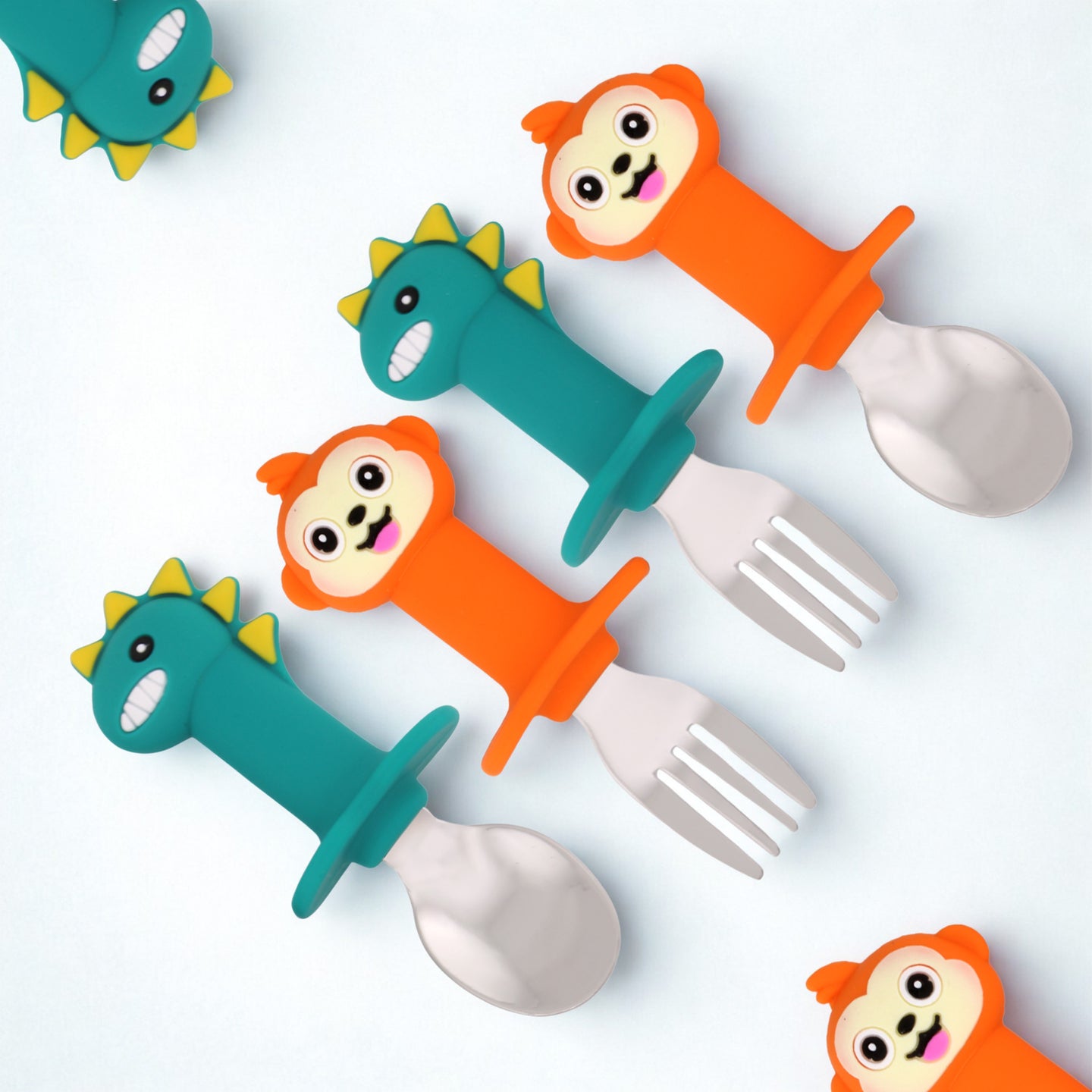 KIDS CUTLERY SET: Includes stainless steel fork and spoon, perfectly sized for little hands.