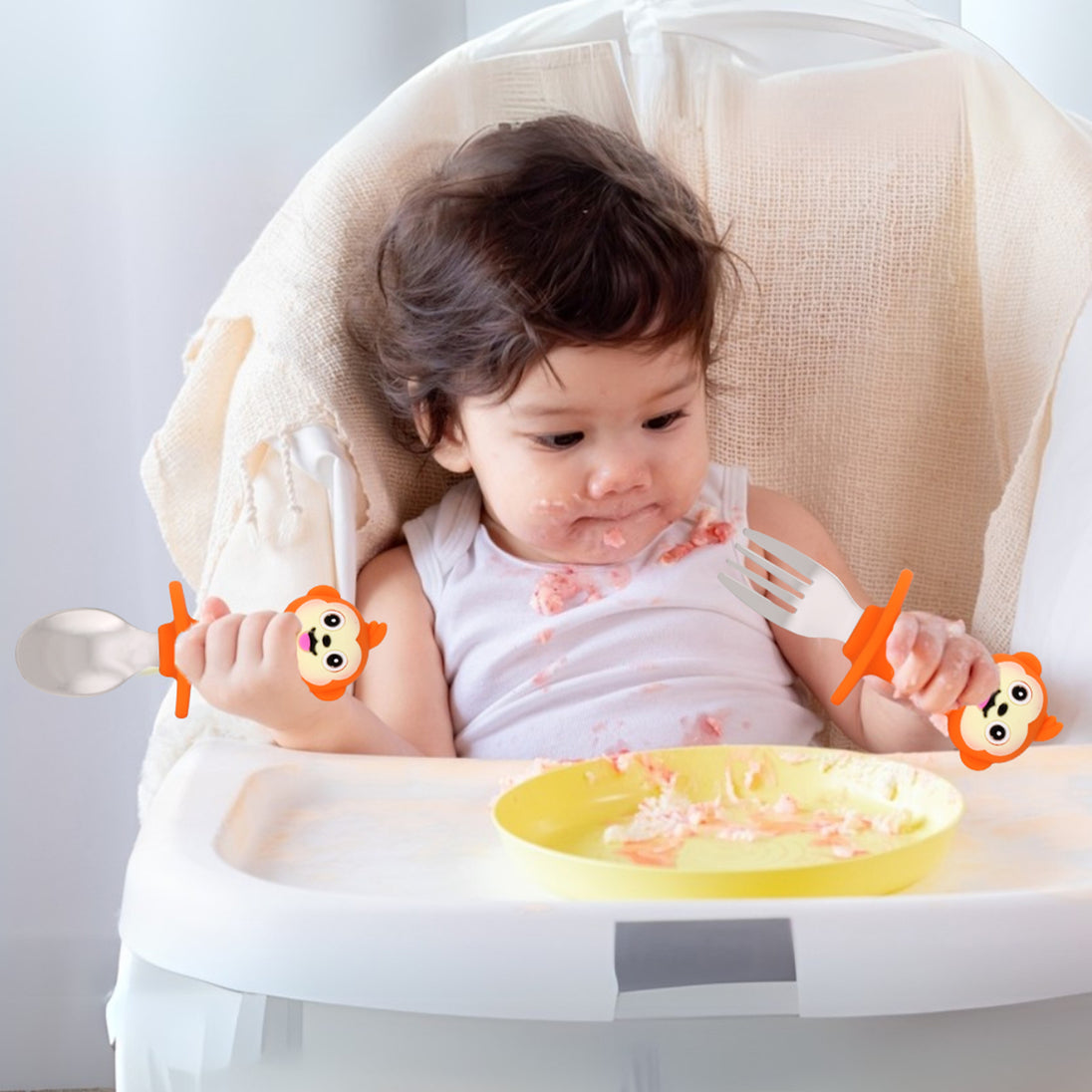 Make mealtime enjoyable and safe for your little ones with Cravista Stainless Steel Kids Cutlery Set specially made for little hands and mouth. They are designed to be safe with smooth round edges to protect a child’s mouth, teeth and gums. Each piece is crafted from durable stainless steel and features a short silicon handle in cute cartoon shapes that kids will love. The fork and spoon are specially designed to fit comfortably in small hands, promoting independence at the table. Whether it's for daily use at home or as gifts for kids, this animal cutlery set is both practical and adorable. Plus, it's easy to clean - simply pop it in the dishwasher after meals. Add a touch of fun to every meal with our Toddler Cutlery Set.
