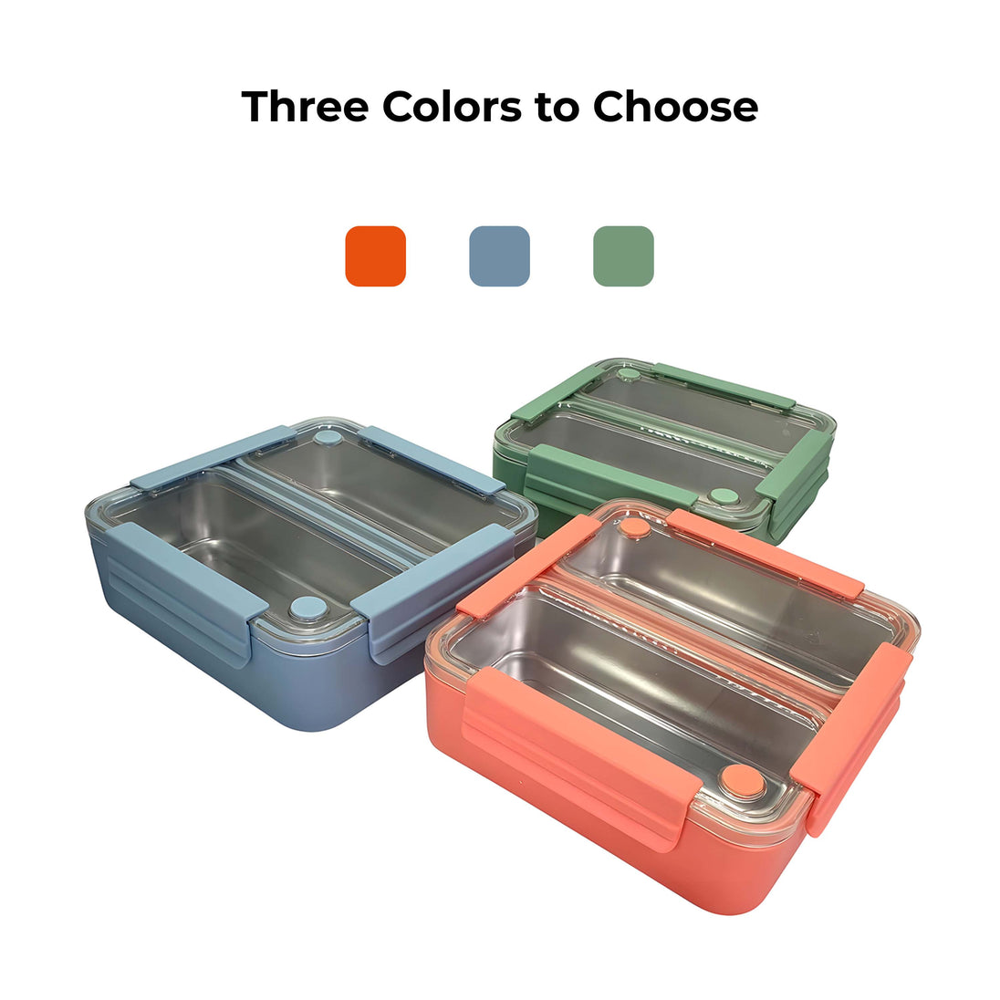 - PREMIUM MATERIAL: Bento box interior is made from the highest quality SUS304 food grade stainless steel. The exterior of the lunch box is made of BPA free, food-grade plastic which is safe and secure to carry as lunch box for kids or adults.