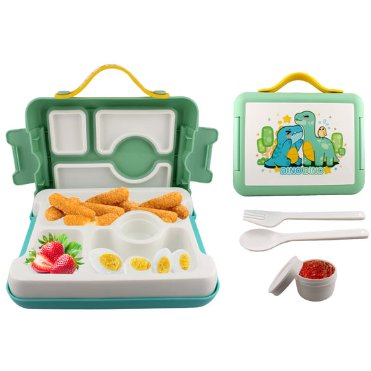 Cravista Dinosaur Kids Bento Lunch Box -Leakproof, BPA-Free, Airtight Tiffin with Spoon & Fork- 4 Compartments (Green)