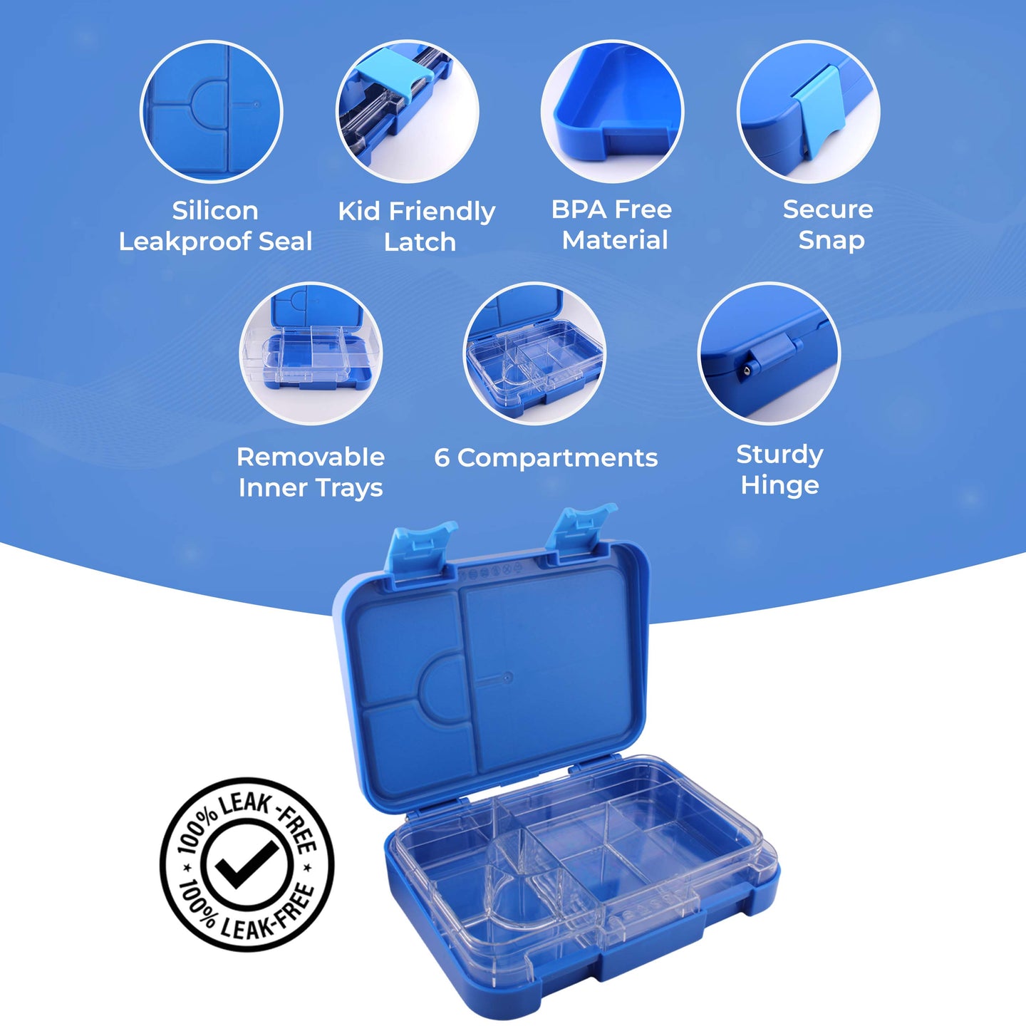 Cravista Bento Lunch Box for Kids with 4-6 Adjustable Compartments, BPA Free Leakproof 760ml Tiffin Box (Blue)