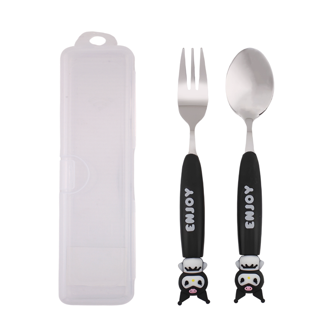 Kuromi Design Kids Cutlery Set with Case – 2-Piece Stainless Steel Fork and Spoon with Cute Cartoon Kitty Carrying Case – BPA Free Cutlery Set Gift for Girls Lunch Box Picnic Travel