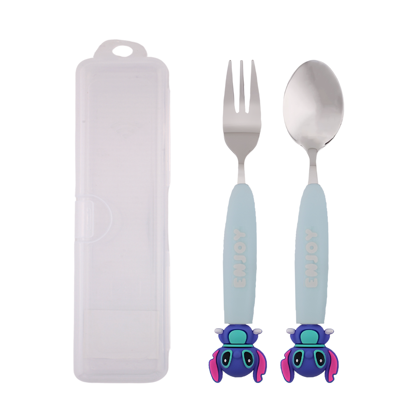 Stitch Design Kids Cutlery Set with Case - 2-Piece Stainless Steel BPA Free Cutlery Set Includes Spoon, Fork and Case for Lunch Box, Picnic and Travel